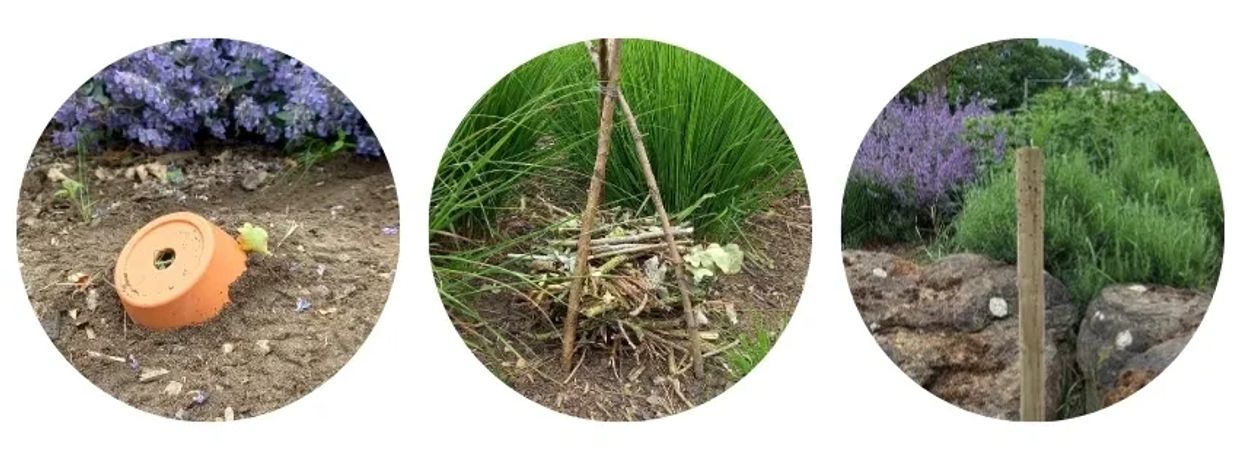 These upturned, half buried pots, filled with dry grass provide a home for bumblebees (many are ground nesters).